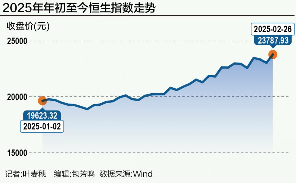 财政预算决议公布后,港股应声大幅高潮。章程2月26日收盘,恒生指数高潮至23787.93点,涨幅达到3.27%,恒生科技指数当日高潮4.47%,成为本轮港股高潮的“领头羊”。