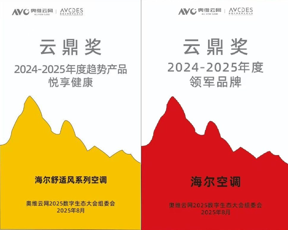在此配景下,海尔空调凭借在健康、节能、制冷等方面的时刻引颈,成为7月三强中独一份额同比正增的品牌,并于近日举办的奥维云网2025数字生态大会上斩获“2024-2025年度趋势家具(悦享健康)”与“2024-2025年度领军品牌”两项云鼎奖。